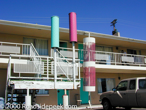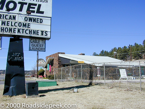 The Whispering Winds Motel is a mid-century modern motel that features both a cool sign and modern looking motel. Back in 2000, the motel sign proudly proclaimed that it was American owned and offered TV, phone, and kitchens to its guests. The motel looked to be in decent shape from the outside, though I never stayed there. The motel opened in 1964.