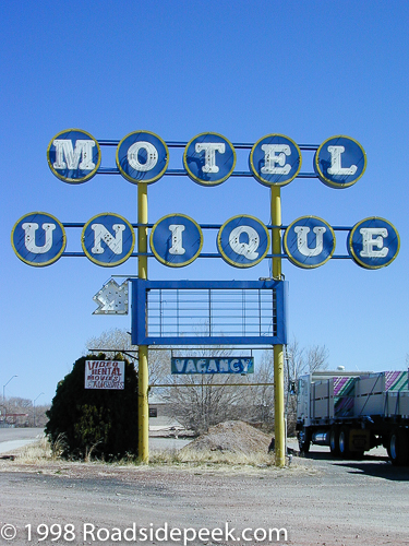 This marquee for the Motel Unique in Seligman sat off