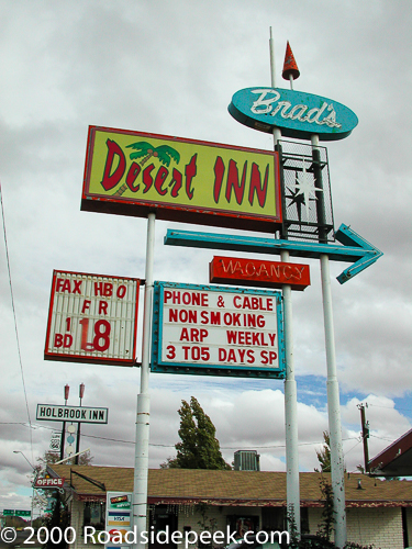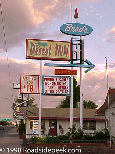 Check out this cool old sign at Brad's Desert Inn Motel. The motel dates back to the early 1960s as Brad's Motel complete with 18 rooms open to tourists.