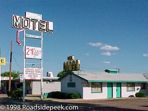 A couple of decades ago, the motel advertised rooms for $18. While the dollars went up at this Route 66 motel, the motel still survives into 2021 and featured a new paint job several years ago. 09-21
