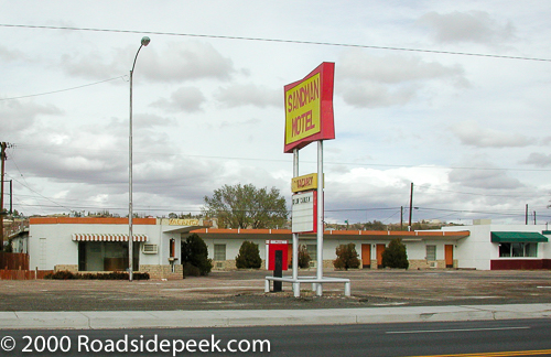 Mr Sandman, bring me a dream. La la la. Well this Sandman Motel was the place of rest and dreams to many a roadside traveler over the years along once busy Route 66 in Holbrook, AZ. Well after the Interstate 40 crossed into town, the town lost a lot of business and many of the old businesses began to decline. The Sandman Motel lasted until the 1990s when this photo was taken. I believe the sign was gone not too long after.