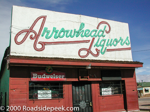 Check out the front of the Arrowhead Liquors found in the Route 66 town of Winslow, AZ. The neon letters on the front of the liquor store are quite eye catching. The store used to be found at 318 E. 2nd Street in Winslow. Unfortunately the business shoot down several years ago and the whole building is completely stripped of any sign of it being a liquor store back in the day. So the Arrowhead Liquors is now no more. 09-21