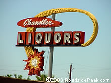 Here's a fine liquor store marquee. The swooping arrow for Chandler