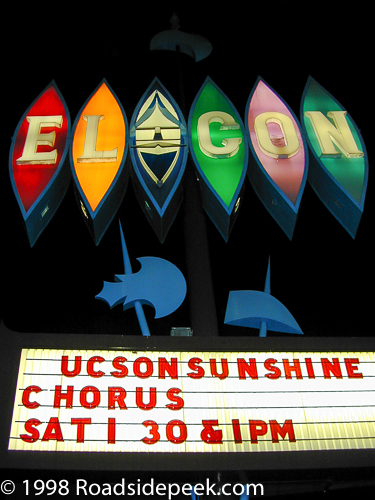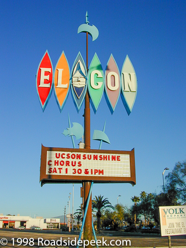 The El Con Mall sign is a very well recognized sign in Tucson. The El Con Mall is Tucson's first mall debuting in1961. The mall located to the El Conquistador Hotel which was originally supposed to be a part of this mid-century mall. The first configuration was as an outdoor shopping center with establishments such as Levy's department store, Montgomery Ward, and Woolworth. The El Conquistador Hotel was torn down in 1968 to help expand the mall. So the very hotel that earned the mall its name ended up being space within the mall.