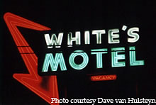 UPDATE 09/09 : Here's a a dusk shot of the White's Motel marquee before being removed. Many thanks to Scott Strickland for updated photo. 09-09
