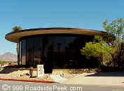 Here's an interesting circular/cylindrical building with all glass walls. Not sure what this was in the past. See this type of architecture here at Roadside Peek's Mid Century Modern California Desert.