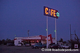 Here's the International Cafe in Yermo, CA as dusk begins to set. The cafe is open with cars arriving to chow down on some hot hearty meals.