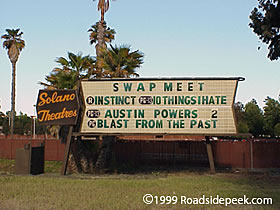 UPDATE 05/06 : The Solano Drive-in showed its last movie in 2004. (See below as the drive-in reopened in 2007). 05-06