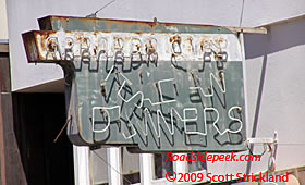 Pleasanton, CA is home to the Dean's Cafe and this sign with neon lettering. Dean's opened its doors in the mid-1950's on Pleasanton's Main Street. 10-09