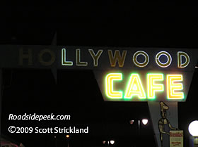 Can't speak for their food but the Hollywood Cafe features an eye-catching marquee. The Hollywood Cafe is located off the main road in Lodi. 10-09