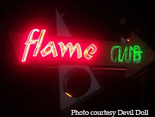 trough that's an eye-catcher due to the green neon gecko on its sign.