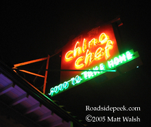 Here's a neon shot of the China Chef sign in Oakland. The sign prominently advertises its take home services. 12-05