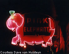yes.. a pink elephant. This neon delight still lights up the sky.