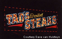 Here's the sign for Tad's Steaks all lit up. This steak house is located near Union Square in San Francisco.