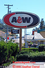A & W was founded in Lodi, California in 1922. By 1960, the company had 2000 restaurants. This A & W in San Rafael has been nicely maintained. 09-08