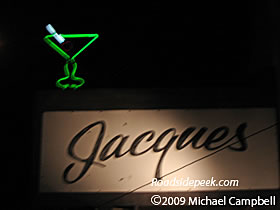 Here's the marquee for Jacques Bar on Thornton Avenue in Newark. Other than the neon martini glass, there's nothing spectacular about this sign, but it's located in the hottest part of once vibrant Old Newark. Thornton Avenue was always a lively place. Jacques was formerly The Marmist. 02-09
