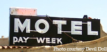 or two spelling out the words "MOTEL" to the tired traveler.