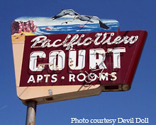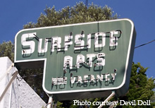 The Surfside Apartments in Santa Cruz features a neon
