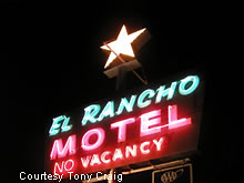 Off on the east side of the 395 is the El Rancho Motel with its shining star.