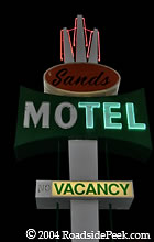 The neon lights the way into the Kingsway Motel lobby at this motor court located in Belmont, CA.