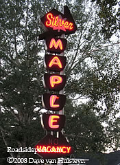 The letters from the Silver Maple Motel sign glow as dusk begins to settle in the town of Bridgeport. 09-08
