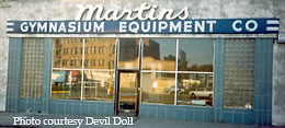 Check out the streamline front of the Martin's Gymnasium Equipment Co.