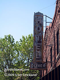 The Oliver Hotel is located in Santa Rosa, CA. The hotel still features an old faded out sign. 10-09