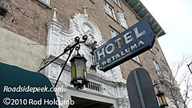 Here's the entrance and sign for the Hotel Petaluma, located north of San Francisco. The hotel itself as founded in 1923 and survives to this day. 12-10