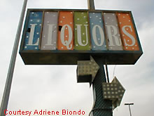 Here's a nice tropical sign for Lanai Liquors, complete with palm