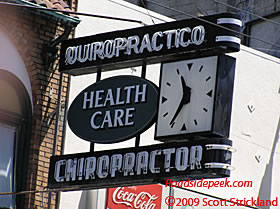 Check out this old sign for this chiropractor and health care business. This marquee in San Francisco is also one of the old clock type of signs. 11-09