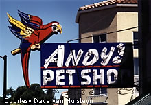 Andy's Pet Shop features a gem of a sign. This colorful marquee