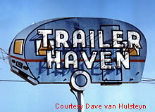 The Trailer Haven sign is creatively shaped in the form of a trailer. It also somewhat looks