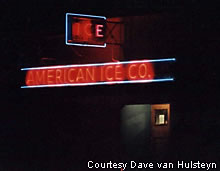 The American Ice Co. is next door to a ice rink that burned down. From the looks of things, the neon on this place was something to behold. Unfortunately, the neon no longer lights up these days.