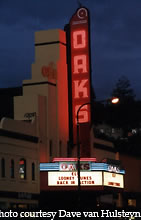 Another theatre featuring great neon on its front, the Oaks Theatre in Berkeley still lights up the street at night. Restored in the early