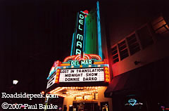 Here's the famous Del Mar Theatre from downtown Santa Cruz, CA. The Del Mar opened in 1936 and was an area landmark until being suddenly shut down in November 1999. Fortunately, due to the effort of the community, preservation groups, and the redevelopment agency, among others, the Del Mar was reopened in a new grand opening on March 2, 2001. 02-07