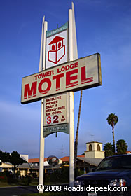 This old sign is for the Tower Lodge Motel in Chula Vista, CA. This sign design is common and was once part of a chain. According to the San Diego Union Tribune, the 35 year old Tower Lodge was to be demolished in 2007 and replaced with apartments. 12-08