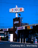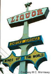 A googie looking marquee adorns the Leucadia Liquor store in none