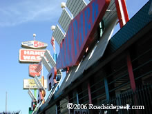 Here are a couple of additional shots of the Magic Car Wash in Los Angeles. The arches curving over the circular letters lend a feel of an old automobile bouncing along a road. Unfortunately, the Magic Car Wash and its sign and arches was torn down several years ago. 04-06