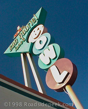 The Bowl-O-Drome in Torrance, CA appears to sport new colors and signage since the early 1990's. 08-98