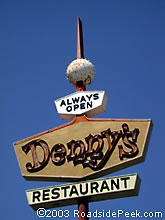 (Far right) The Denny's marquee with the space age orb on top of the sign