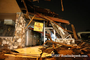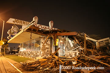 New! Photos from the June 13, 2007 showing the roof has now collapsed at Johnie's.