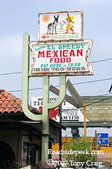 The El Speedy Mexican Food restaurant in North Hollywood still features cactus shaped sign with an amusing graphic. 03-07