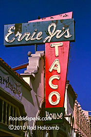 Here's the marquee for Ernie Jr's Taco in Pasadena, CA. The restaurant was considered Ernie Jr's Taco House #4 when it was opened in 1955. This location closed in 1998. There is currently an Ernie Jr's open on West Broadway in Eagle Rock. 11-10