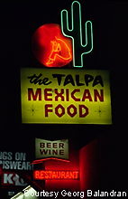 Mexican Food restaurant features a neon figure huddle under