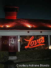 (Far left) The venerable Love's restaurant with its well known lettering at night