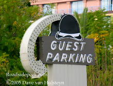 On the left is the parking lot sign for The Derby restaurant in Arcadia. The Derby originally started up in 1922 as the Proctor Tavern. According to their website, The Derby was opened in 1938 by George Woolf, the jockey who rode Seabiscuit to victory in the "Race of the Century". 11-05