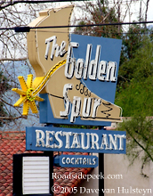 Here's the familiar sign for The Golden Spur Restaurant along Route 66 in Glendora. Word is the Golden Spur opened around 80 years ago and once primarily served up burgers. 11-05