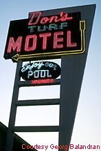 The Don's Turf Motel shows off its tall marquee as its sits near the racetrack.