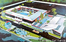 To the left is an artist's rendering of the Sky Villa Motel complex