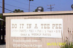 Located along Route 66 in Rialto, CA, the Wigwam Motel has been a roadside curiosity and sleep over since 1949. One of a chain of Wigwam Motels, the Rialto location features a sign on the side of the building that say "Do it in a tee pee" like it did in the old days. 06-07